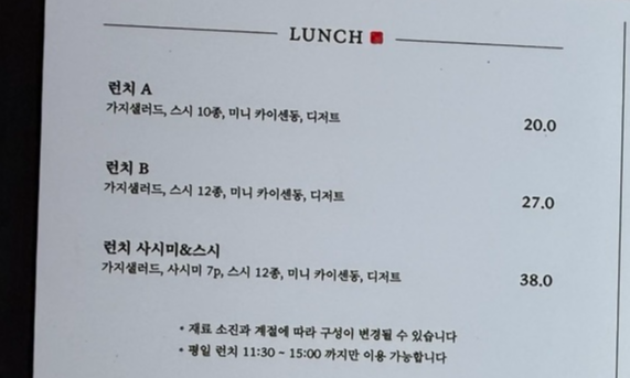 런치메뉴는 평일 11:30 ~ 15:00 까지만 이용 가능하다.