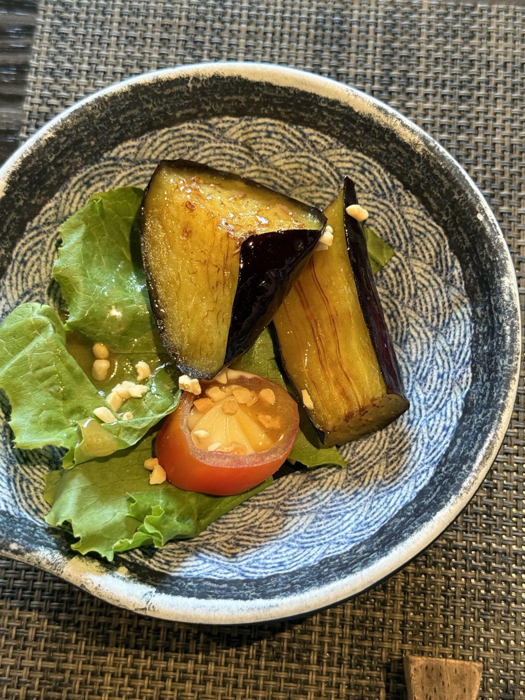 가지샐러드의 가지가 갓구워져 뜨거웠다ㅎㅎ